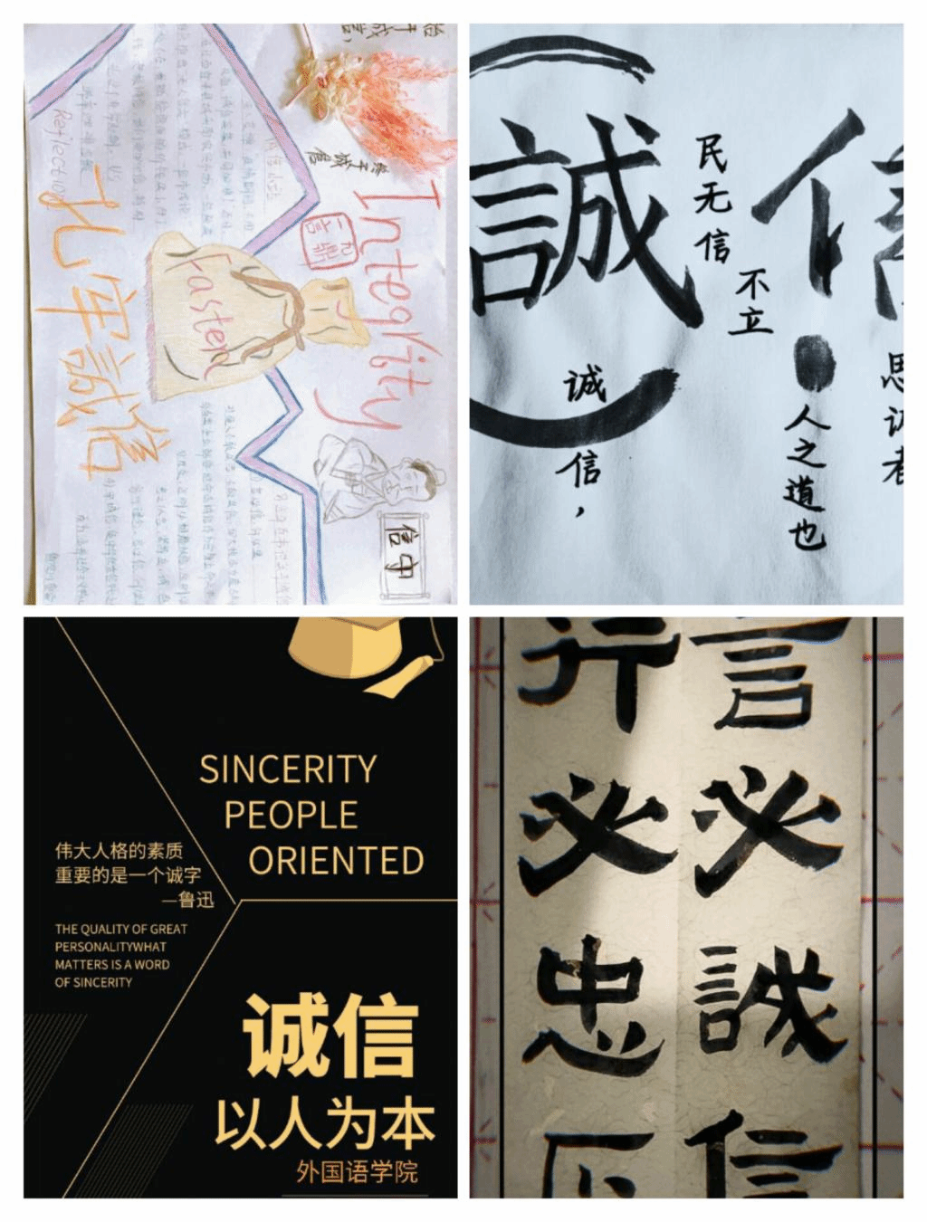 活动伊始,bv伟德国际1946各个年级辅导员发出通知要求全体员工以“诚信”为主题进行文艺创作,作品类型包括征文、书法、平面设计,所有作品必须原创。活动期间,bv伟德国际1946员工积极参与,并创作出多种类型的作品:与家人一起制作体现诚信的书画、音乐作品;参与线上主题征文活动;以及毛笔硬笔书法活动和电脑制作的平面设计类作品或手绘形式创作主题宣传画或相关海报、书签等。这些作品都利于凝聚人心,增强信心,传递了正能量,充分的体现了此次的主题,营造了良好的诚信氛围。