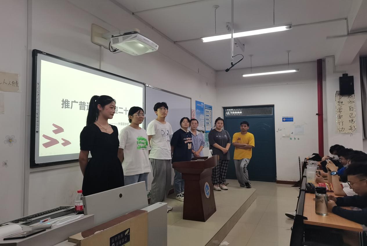 首先,bv伟德国际1946利用校内电子屏宣传推广和规范使用国家通用语言文字的标语和口号、推普公益宣传视频。借助公司网站、校园广播、校园新媒体宣传推普活动,向师生宣传《中华人民共和国国家通用语言文字法》、《河南省实施〈国家通用语言文字法〉办法》等,大力宣传国家语言文字政策法规和规范标准。利用校园广播开设推广普通话专栏,推介经典作品,播放规范的朗读录音。同时开展以“我与普通话的故事”为主题的视频、书法、文章的征集活动,同学们积极投稿,各抒己见,在小小的活动中发出大大的声音。此外,22级新生还举办了“推普训练营”活动,共同观看了推广普通话宣传短片并通过一些趣味游戏增强了同学们规范使用普通话的意识。中华经典诵读展演、语言文字知识竞赛、规范汉字书写、“经典润乡土”……各项活动在同学们的踊跃参与中如火如荼地展开,并最终取得了良好的成果。