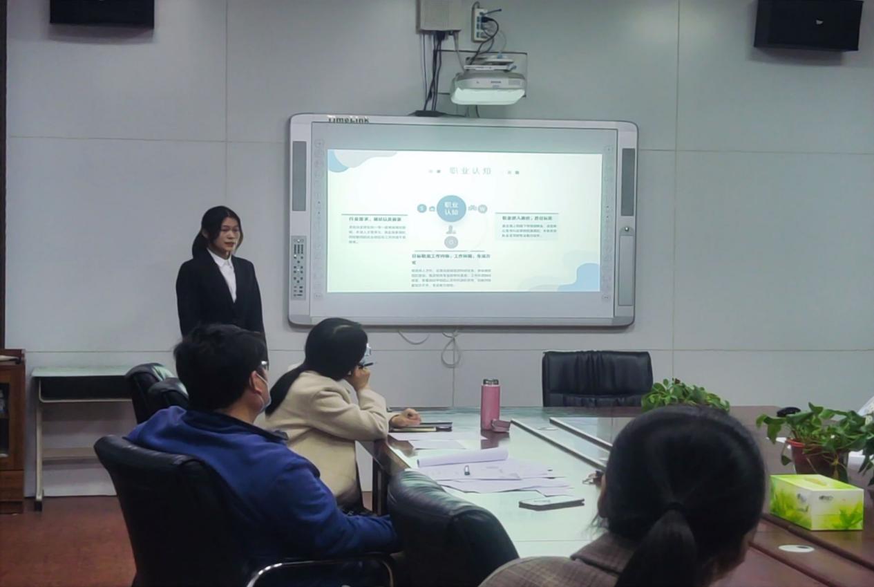比赛开始,主持人介绍比赛规则和注意事项。随后,参赛选手根据大赛要求,依次向评委老师展示了自我认知、职业认知、职业决策、职业评估与调整按照以及职业道德等内容。选手们思路清晰,陈述得体且应对从容,展现出了良好的素养。同时,各位评委老师也认真审阅、仔细评判,结合外部就业环境和个人特质分别给参赛者提出了具有针对性,可操作性的建议。所有选手展示完毕后,由评委们进行综合打分并点评。