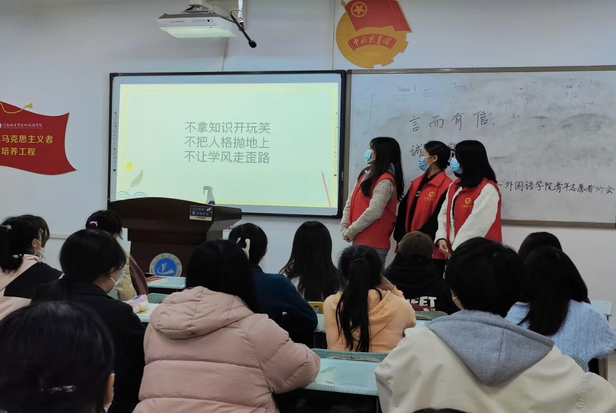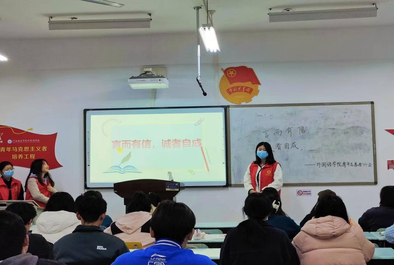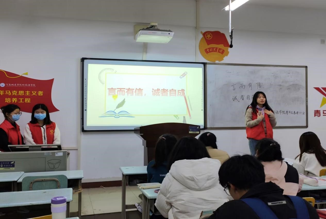 (通讯员 杨玲玲 谢宇阳)为大力弘扬诚信文化,切实提升员工的诚信品质,增强大家的自律意识。11月17日晚,bv伟德国际1946在美荟楼302教室组织开展以“言而有信,诚者自成”为主题的文明月宣传活动。