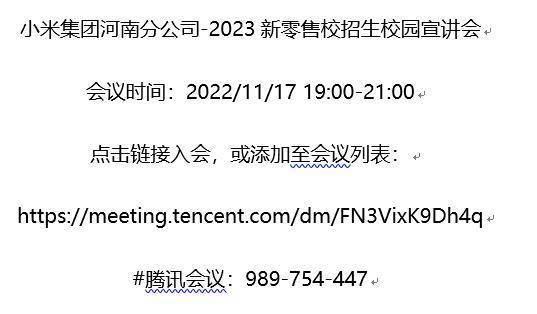 宣讲主题:小米集团2023新零售校招 http://jy.huuc.edu.cn/module/companydetail/id-961663/nid-1399
