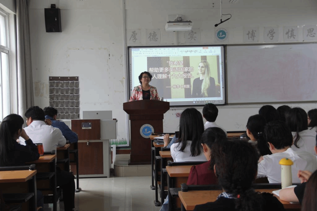 朱建祥首先总体上回顾了党的十九大报告的主要内容,随后结合外语专业特点从时代特色表达法的翻译、经典句子的翻译、语意补充、原文直译、具体概念抽象化、逻辑关系显化、人文情怀句妙意、句子重塑等多个方面生动解读了党的十九大报告英文版的内容。最后,朱建祥提出党的十九大报告大气磅礴、内容丰富,报告中一系列新思想、新论断、新提法、新举措受到广泛关注,其英文版经过中外专家、译者精心解读与翻译,无论内容还是形式同样精彩纷呈。作为党员、外语教育工作者和英语学习者,了解学习党的十九大报告英文表述非常有必要,对我们更深层次领会党的十九大报告精神,指导员工学习有关中国故事的英文表达进而更好地向全世界讲好中国故事极其有益。