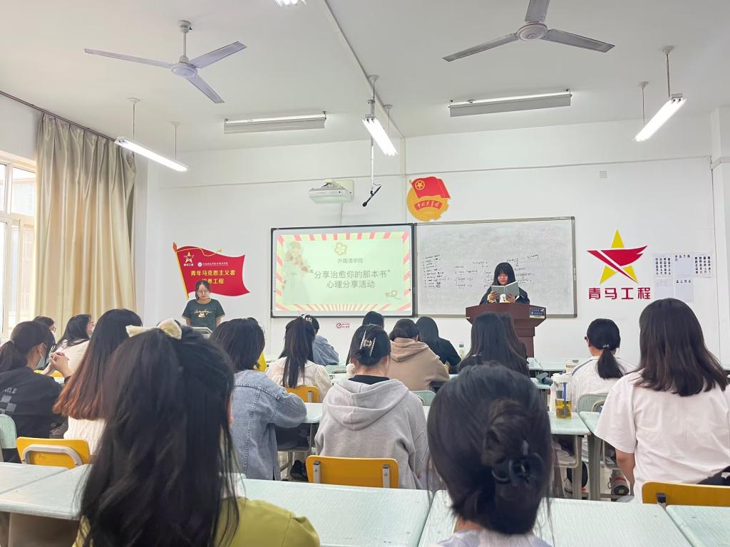 在本次分享活动中,同学们侃侃而谈,分享“治愈”自己的书籍,把从书中的收获融入到自己的生活中,学习中。用书籍的力量治愈心灵,提高自己缓解负面情绪的能力,提高自己的心理素质。
