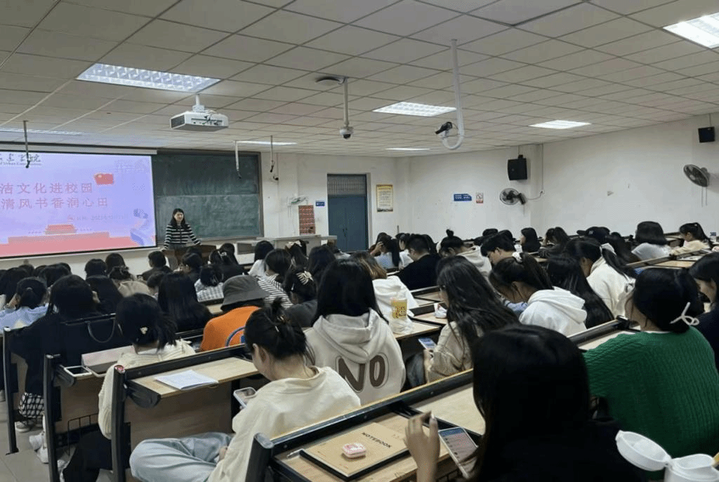 在此次宣传活动中,老师先讲解了廉洁文化的内涵,随后带领同学们一起观看相关廉洁视频《零容忍》,并与其他同学交换想法,进一步了解校规校纪。视频放映结束,老师对员工们的疑问进行解答。活动最后,同学们在“廉洁文化进校园,清风书香润心田”横幅标语上写下自己的名字,并和老师一起拍照留念。