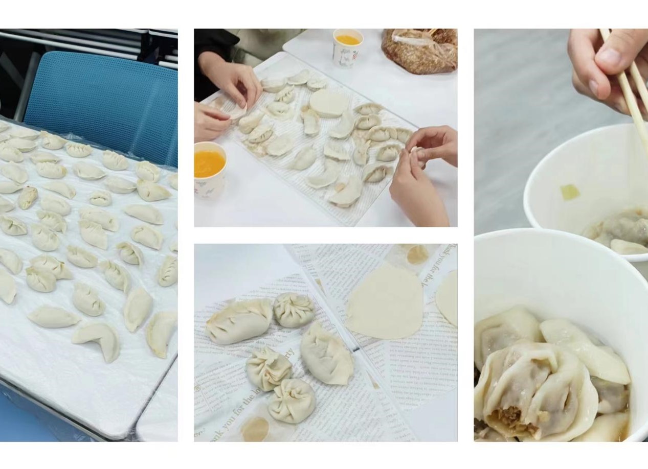 活动中,大家一起动手揉面、擀皮、包饺子,有分工有合作,各显身手,忙得不亦乐乎。大家一边包着饺子,一边畅谈冬至的习俗和趣事,一盘盘热腾腾的饺子端上了桌,驱散了冬日的严寒,现场欢声笑语、暖意融融。在吃过热腾腾的饺子后,罗孟阳老师组织大家开展击鼓传花以及抢凳子的游戏,拿到花以及没有抢到凳子的同学为大家表演才艺。在活动的最后,罗孟阳老师组织同学们合唱《灯火里的中国》,一起送上节气祝福,活动在同学们动听的歌声中落下帷幕。