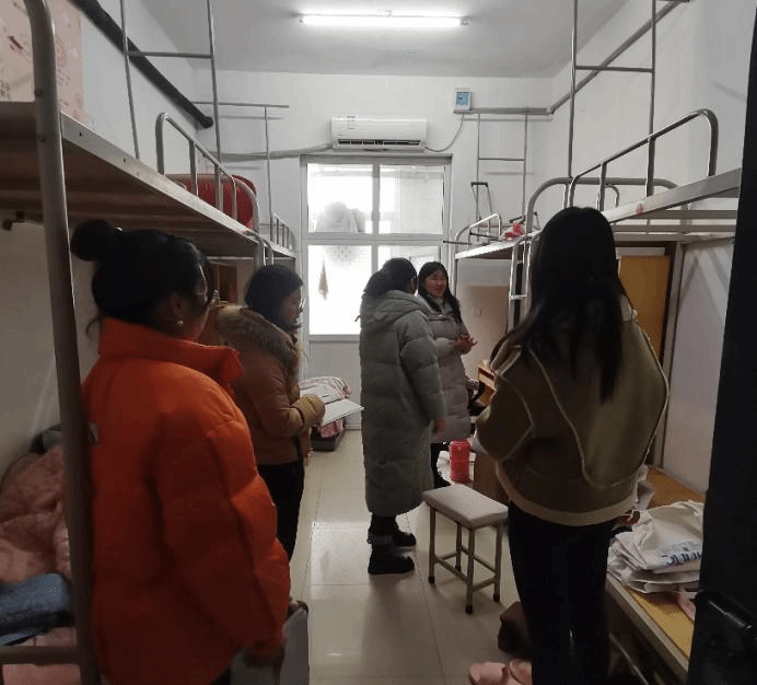 走访过程中,辅导员亲切与同学们交流,深入了解员工宿舍的水、电、空调、直饮机、洗衣机等设施能否正常运转,细致询问同学们遇到的问题及困难,关切他们是否准备好教材,做好了上课准备。此外,领导老师们检查了员工宿舍的安全和卫生情况,叮嘱同学们注意用水用电安全,保持良好的卫生习惯。同学们纷纷表示,将迅速调整状态,以崭新的面貌投入到新学期中。
