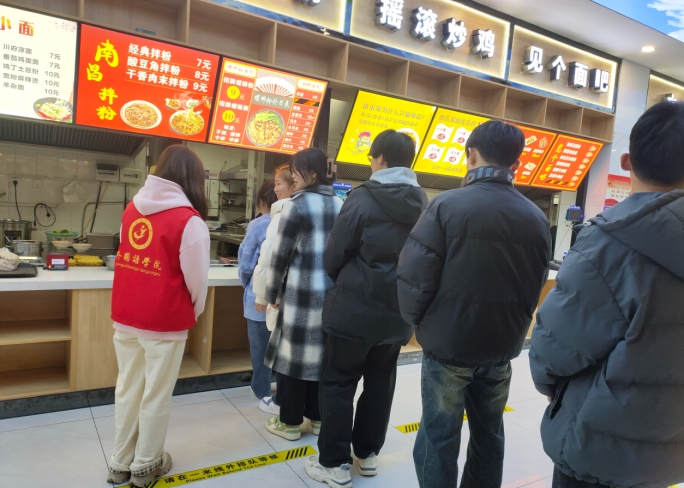 活动过程中,志愿者们分为三组开展活动,第一组志愿者在排队区域提醒同学们有序排队,第二组志愿者在就餐区提醒各位同学饭后清理餐桌,将碗筷及时送至回收处,第三组志愿者在碗筷回收处帮助工作人员整理碗筷。各位志愿者互相配合,齐心协力引导各位同学文明就餐,节约粮食,努力倡导文明新风尚。