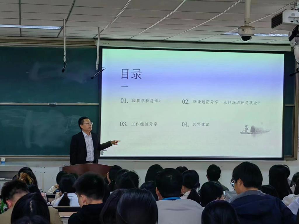 会议开始,张湘雨对周红卫做了简单介绍并对他返校为学弟学妹开展经验交流分享活动表示衷心的感谢。随后,周红卫从个人介绍、在校学习经历、考研与就业、择业及工作经验等方面向学弟学妹们做了具体分享,同时,他表示欢迎同学们毕业后赴菲律宾到他所在的企业入职。分享会现场气氛活跃,参会同学认真听讲并积极进行互动交流。