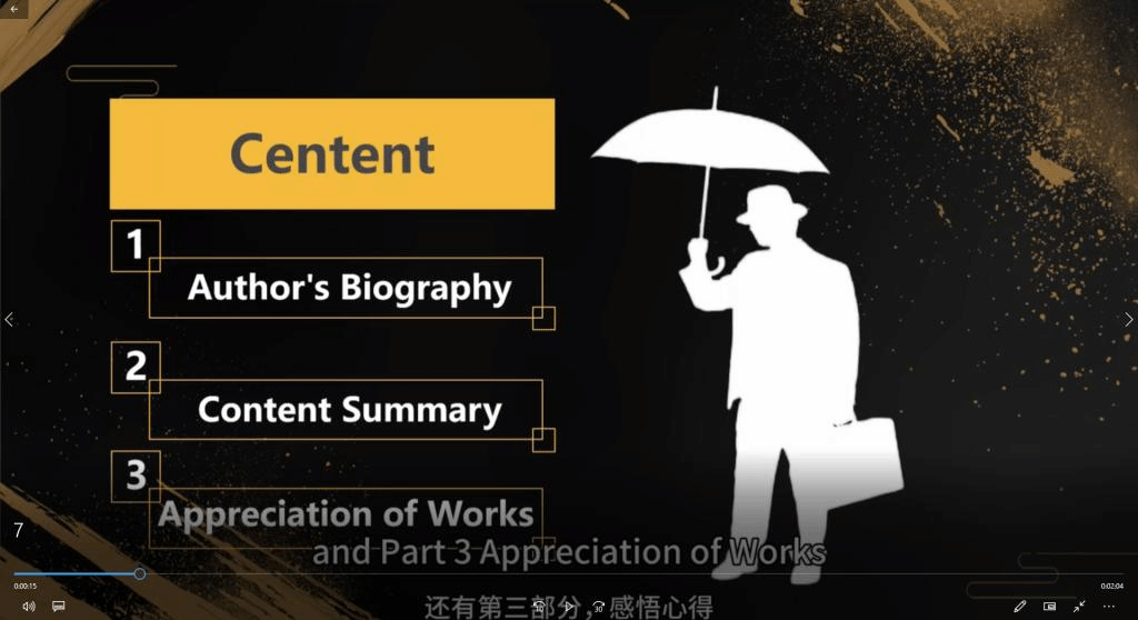 活动面向公司全体员工,鼓励员工推荐自己喜欢的名著,视频作品语言可为英语或日语,双语字幕;公司初筛后,共有10个作品进入决赛。评委从内容、 画面、语音语调、视频整体效果等方面打分,最终评选出一等奖一名,二等奖3名,三等奖6名。