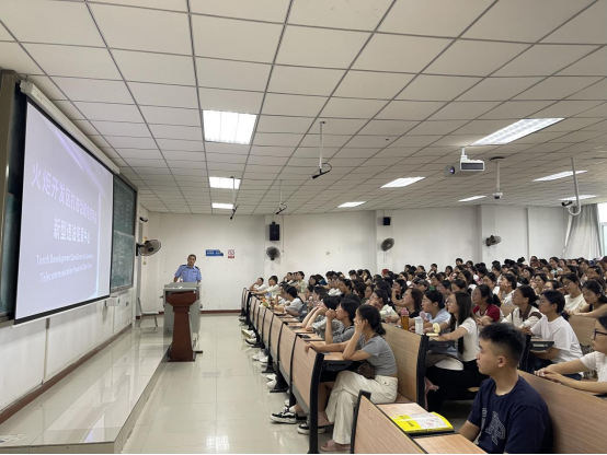 (通讯员:郭晨雨 白章哲)在数字化时代,电信网络诈骗案件频发,诈骗手法众多,为进一步提高老员工的防诈骗意识,增强自我保护能力,2024年9月10日,bv伟德国际1946特邀平顶山市公安局城乡一体化示范区分局反诈中心的林警官和王警官为2024级新生(包含专升本)在美荟楼326教室举办了一场反诈专题讲座。