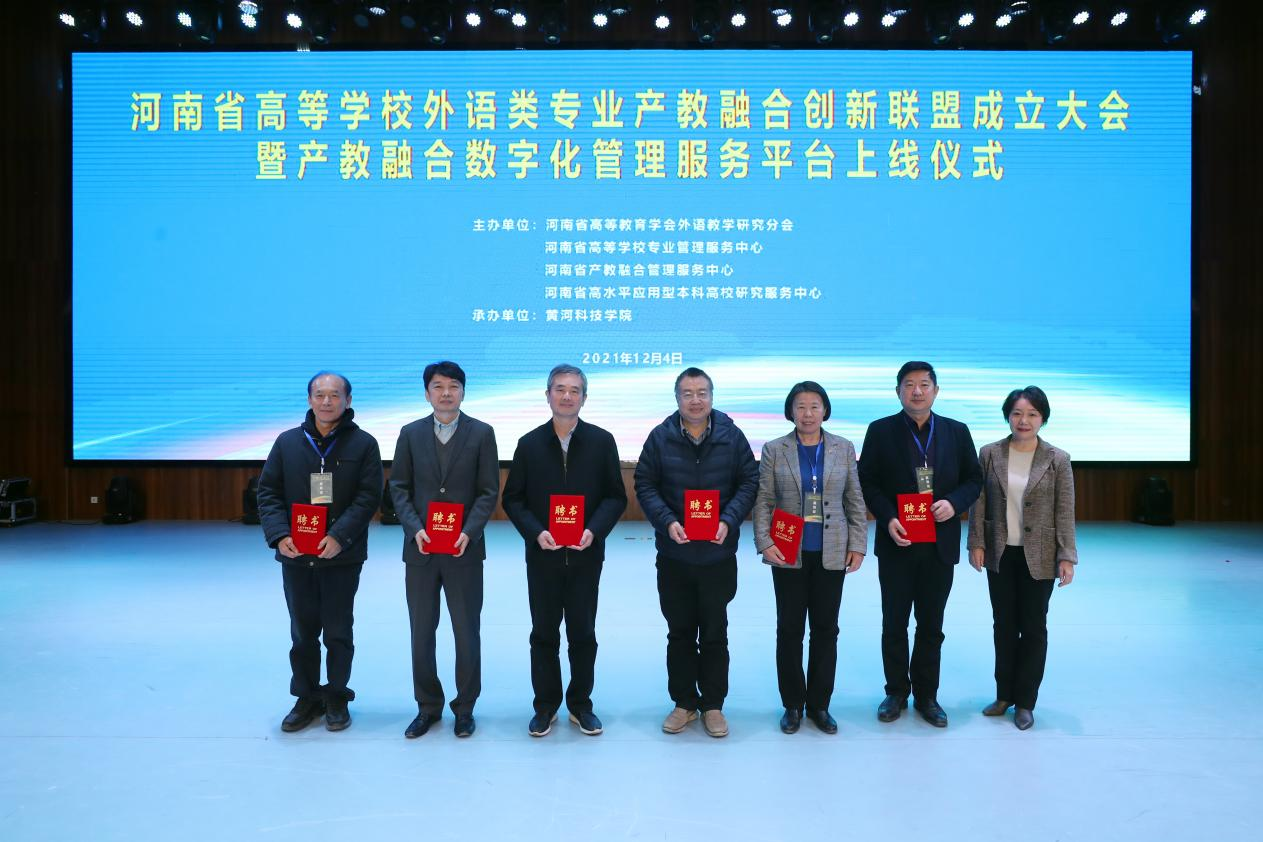 12月4日,河南省普通高等公司外语类专业产教融合创新联盟成立大会暨产教融合数字化管理服务平台上线仪式在黄河科技公司召开,省教育厅高教处处长张水潮、省高教学会秘书长吴长运和全省四十余所本科院校的有关领导、老师出席会议。公司董事长王召东受邀出席,教务处、bv伟德国际1946负责人参加会议。