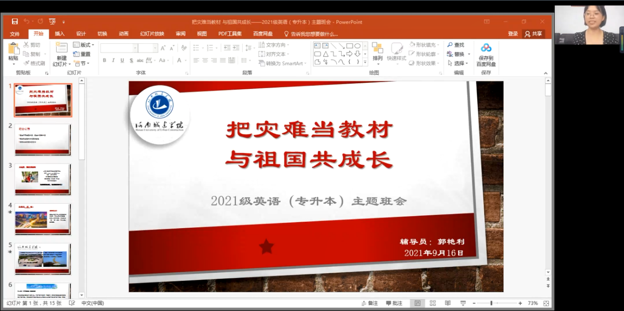 (通讯员 于瑞雪 王华夏)为宣传防汛救灾中优秀典型的先进事迹,引导青年员工客观认识疫情,做好科学防控,把灾难当教材,把困难当磨砺,在具体实践中厚植爱国主义情怀。9月16日,bv伟德国际1946于钉钉直播平台组织2021级新生开展以“把灾难当教材,与祖国共成长”为主题的新生班会活动。