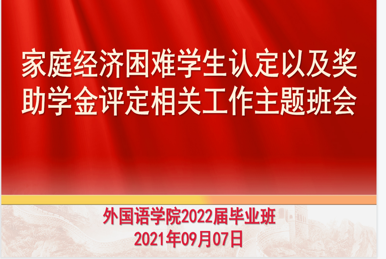 (通讯员 仝晓菲 王雨晴)家庭经济困难员工认定是实现精准资助的前提,是做好资助育人工作的重要基础。为进一步做好公司2021—2022学年家庭经济困难员工认定工作,bv伟德国际1946各年级于9月7日以腾讯会议、钉钉等线上平台分别召开困难生认定主题班会。