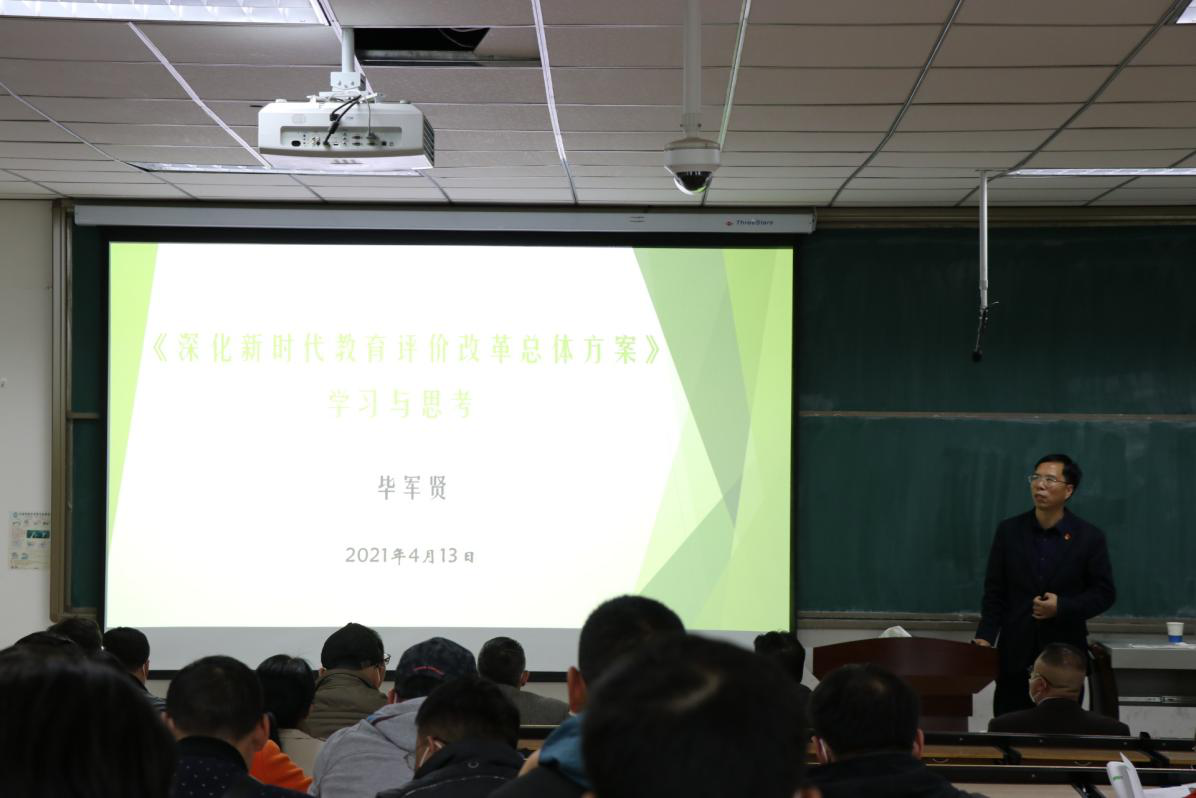 (通讯员:王莉)4月13日下午,公司联合艺术设计公司、国际教育公司、体育教学部邀请合作与发展规划处处长毕军贤在一号楼326教室为四个教公司部全体教师做《深化新时代教育评价改革总体方案》解读宣讲,会议由外国语公司党委书记王东旭主持。