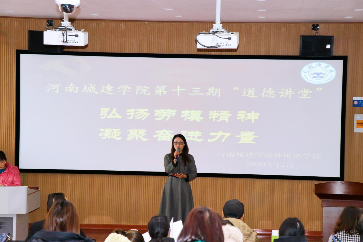 (通讯员 张雨梦)为深入学习习近平总书记在全国劳动模范和先进工作者表彰大会上的重要讲话精神,积极培育和践行社会主义核心价值观,弘扬劳模精神,助力文明校园建设。12月8日下午,由校文明办主办、bv伟德国际1946承办的第13期道德讲堂在龙翔校区5号教学楼216音乐教室举行,本期活动主题为“弘扬劳模精神,凝聚奋进力量”。公司党总支书记袁晓、经理秦平新、党总支副书记张换成、副经理秦小锋和公司师生共同参加本次活动。