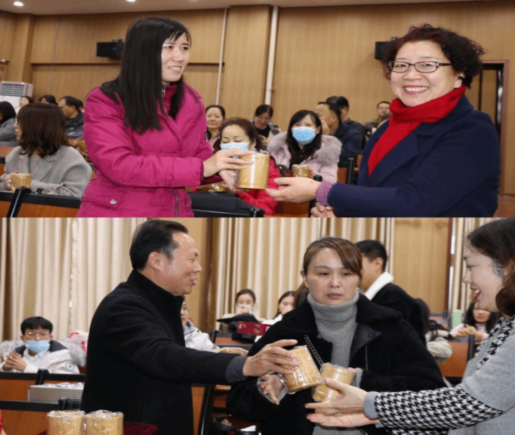 本次道德讲堂活动分为“省自身、唱歌曲、学模范、诵经典、谈感悟、送吉祥”六个部分。在省自身环节,主持人以“谁是你心中的劳动模范?你认为新时代劳模应具备哪些品质?我们怎样以实际行动向劳模学习?”三个问题引导大家追忆初心,静默自省;在唱歌曲环节,全体起立合唱“长大后我就成了你”引导师生,追寻自己最初的梦想;在学模范环节,全体师生一同观看学习2018年感动中国人物张玉滚模范事迹,引发师生对劳模精神的深入思考,立志向模范学习,积极践行劳模精神;在诵经典环节,袁晓诵读习近平总书记《在全国劳动模范和先进工作者表彰大会上的讲话》;在谈感悟环节,公司教师景丽亚、青年志愿者协会的会长2018级邵云同学结合自身的抗疫先进事迹,和大家分享自己在工作中的心得感悟,广大师生受益匪浅;在送吉祥环节,公司领导向在场的师生赠送精美的、具有公司特色的“初心”笔筒。