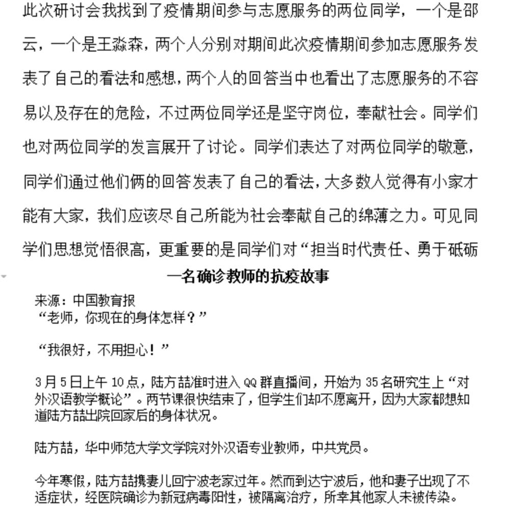 活动以线上的方式召开,通过组织主题团日、团课、研讨会、征文演讲等活动强化团员青年们对回信精神的理解。其次,组织疫情期间参与抗疫志愿服务的青年团员们分享了他们在疫情防控中的感人事迹,并通过座谈交流、研讨会让同学们感受到了青年优秀志愿者们乐于奉献的精神品格,为广大青年团员树立了榜样,激励其向青年先锋看齐,把对他们的敬佩和内心的感动化作奋斗的动力,顽强拼搏勤学上进。最后还开展了毕业班就业情况调查,了解了毕业生目前最关心的就业问题,以期能更好地针对毕业生就业问题给予解答,为毕业生的就业提供更多的有针对性的指导和帮助。