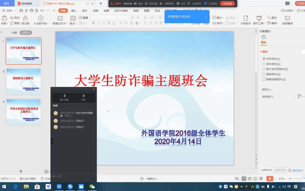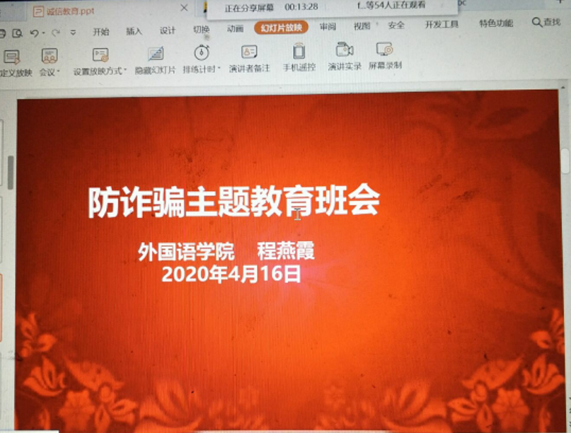 (通讯员 赵星辰 梁源)为加强新时代老员工的安全防范意识,杜绝校园诈骗事件的发生,4月15日到4月23日bv伟德国际1946全体辅导员组织本年级员工开展以“防诈骗教育”为主题的“云班会”,各年级员工积极参与。