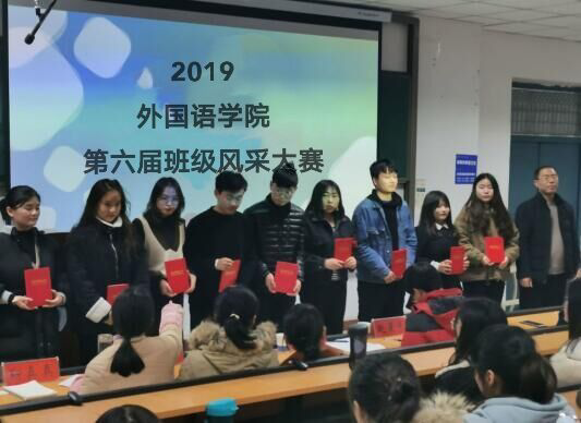 大赛在张换成热情洋溢的致辞中拉开了序幕。接着主持人开始宣布大赛的比赛规则和评分细则。比赛过程中,大一、大二、大三和19级专升本十三个参赛班级各显神通,选手通过文字、PPT、抒情小诗、视频短片、快闪等多种形式进行现场讲解,从干净整洁的教室环境、完善的班级制度、严谨的学风班风、优良的班级软实力、和睦融洽的宿舍环境等多个方面来展示班级风采,具有“正寝风、带班风、促学风”的良好效果,集中展现了bv伟德国际1946“学中西文化,育博雅之才”的院训,给评委和同学们留下了深刻的印象。各班级展示完毕后,张换成带领全体评委老师实地查看参赛班级的卫生状况、桌椅设施、班级装饰和整体风貌,最终根据现场讲解和班级环境布置两方面的综合得分评选出一等奖两名:1314172班、1314171班;二等奖三名:1324172班、1324171班、1324192班;三等奖三名:1324181班、1324182班、1314191班;优秀奖五名:1314181班、1314182班、1324191班、1314192班、1312191班。靳真真老师对比赛进行了精彩点评,张换成给获奖班级颁发荣誉证书并合影留念。