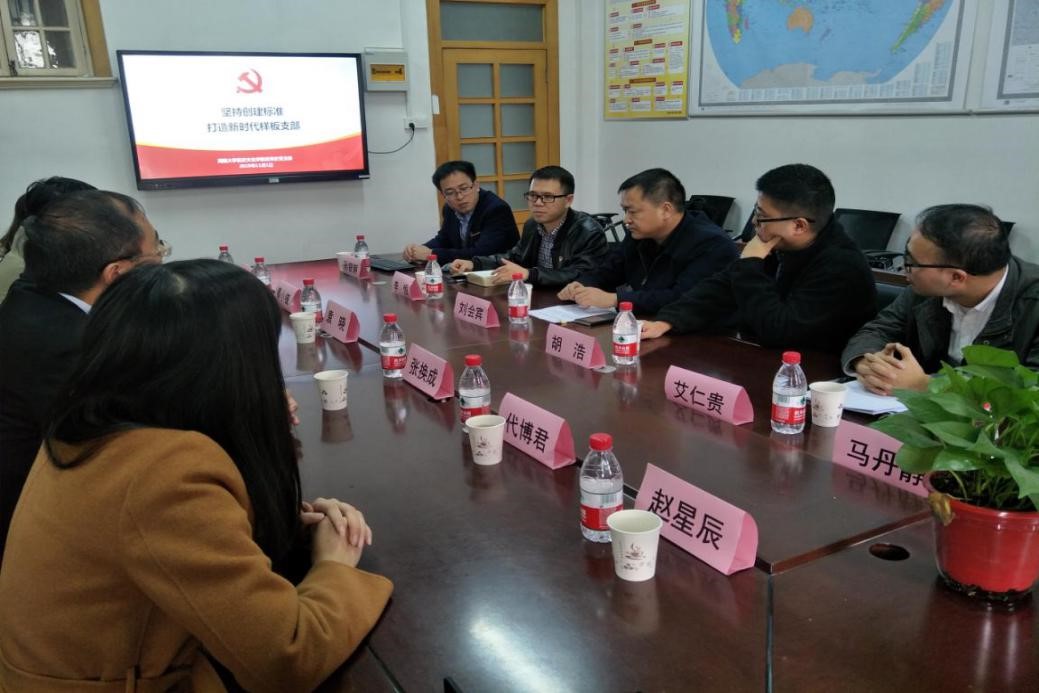 座谈交流会在热烈融洽的氛围中开始,李恒教授主要从世界史在全国党建工作样板支部的创建探索阶段、创建成效和创建设想三个方面进行了介绍讲解。在创建探索阶段,主要讲解了“五抓五提升”:抓机构设置,提升支部组织力;抓保障建设,提升支部服务力;抓阵地建设,提升支部凝聚力;抓组织生活,提升支部影响力;抓日常管理,提升支部战斗力;信息平台建设。在创建成效方面主要讲了:传承中国历史优秀传统文化,坚定文化自信和理论自信;支部国家社科基金累计立项17项。创建样板支部的设想是落实“不忘初心、牢记使命”主题教育;落实立德树人根本任务;支部的活动最终为师生解决了多少最急最忧最盼的民生问题;支部建设突出政治性、原则性、时代性、战斗性;坚持理论学习,用党的科学理论武装头脑;注重考察交流,运用教育平台,发挥好宣传示范引领作用;组织开展课堂思政、社会实践、精准扶贫、山区支教、志愿服务等相关活动,在活动中解决实际问题。交流会上双方还就支部建设方面的其它相关问题进行了沟通和交流。