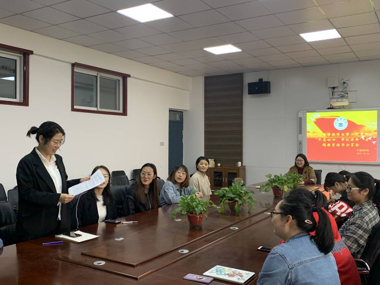 (通讯员:田果果)根据公司“不忘初心、牢记使命”主题教育工作安排,为进一步坚定员工党员们的理想信念,明确自身的责任和使命,10月24日下午,bv伟德国际1946员工第二党支部在1号楼306会议室举行“不忘初心、牢记使命”主题教育读书分享会,支部全体员工党员参加,支部书记田果果负责主持。