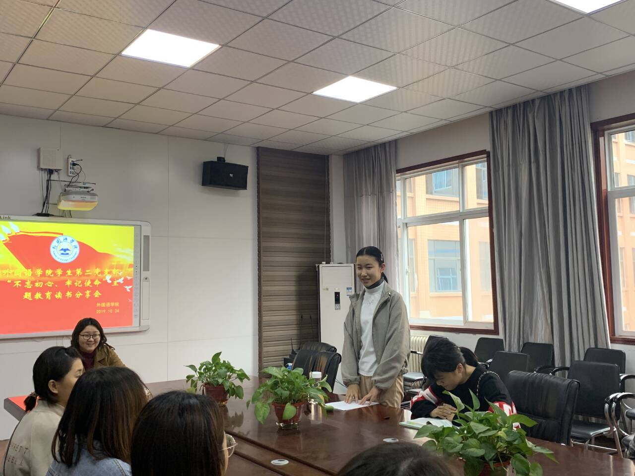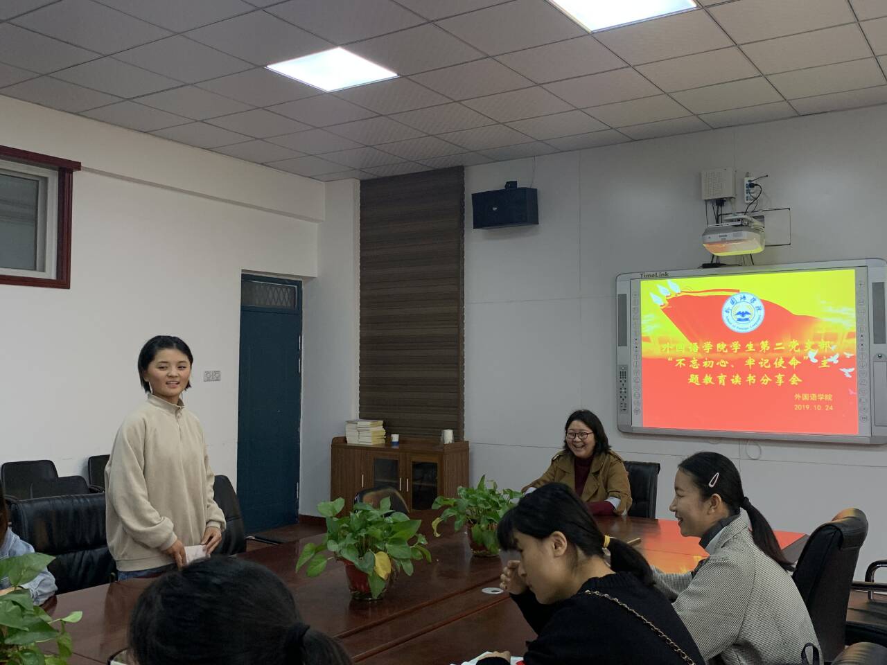 会上,党支部书记田果果老师首先分享了自己学习“习近平总书记在‘不忘初心、牢记使命’主题教育工作会议上的重要讲话”和“习近平总书记在中央政治局第十五次集体学习的重要训话”的心得。然后,党员们结合自身工作学习和生活实际分享了学习体会,交流了学习心得。最后田果果指出应继续加强学习,做好学习笔记。