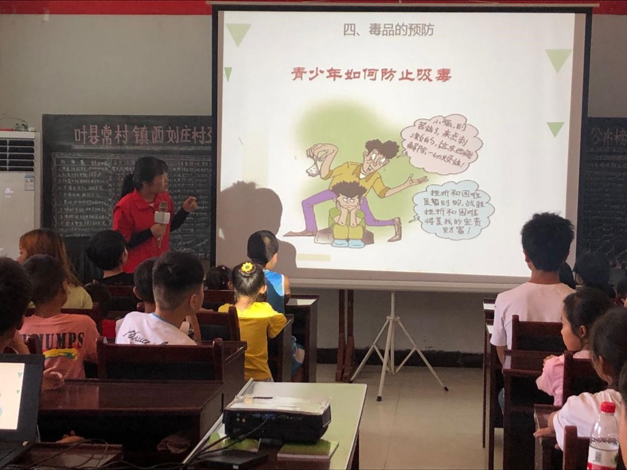 (通讯员 赵星辰)为在农村地区普及“禁毒防艾”基本常识,向农村人民宣传“禁毒防艾”基本政策,提高农村人们拒绝毒品、预防艾滋的“免疫力”,7月22日,bv伟德国际1946志愿者在平顶山市叶县西刘庄村开始2019年暑期“三下乡”社会实践系列活动之青少年“禁毒防艾”主题教育活动。
