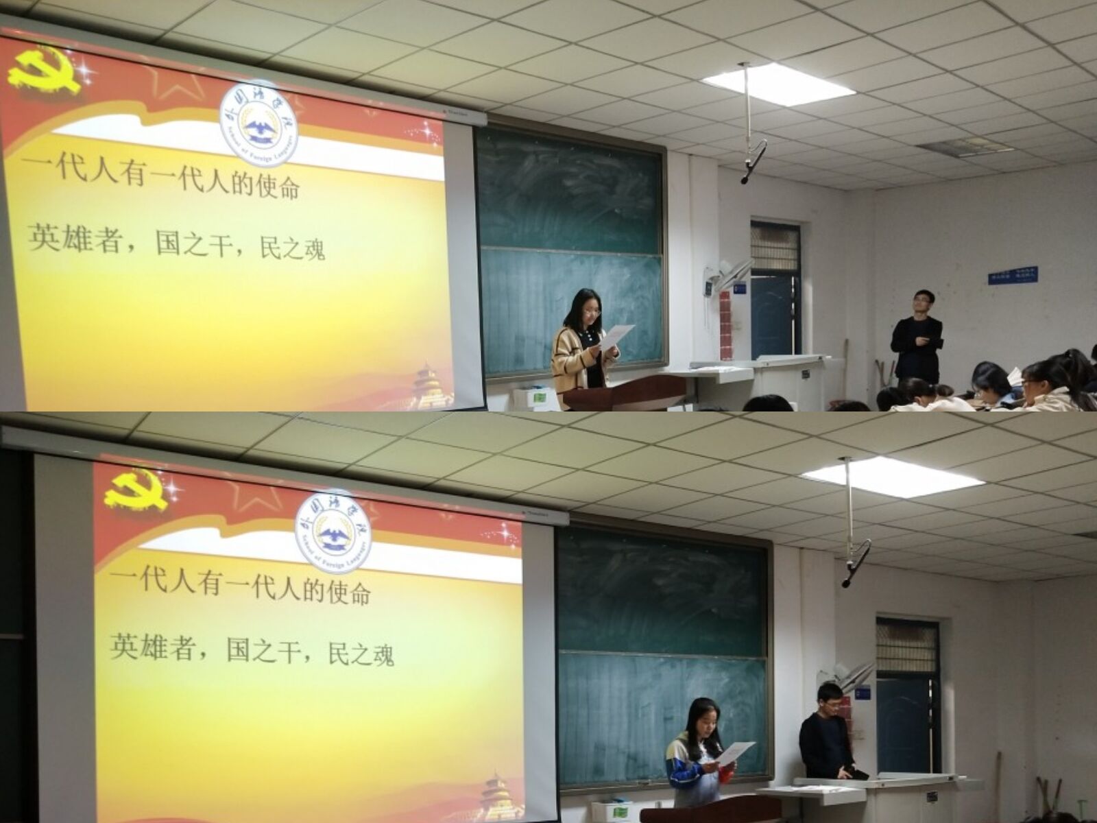 (通讯员 赵星辰)为纪念《中华人民共和国英雄烈士保护法》颁布实施一周年,为永远铭记为国家富强、人民幸福作出巨大贡献和牺牲的英雄烈士,为厚植新时代老员工的爱国主义情怀,以奋发进取的精神面貌喜迎新中国成立70周年,4月3日下午bv伟德国际1946员工党支部在一号教学楼328教室开展“传承•2019 清明祭英烈”主题演讲比赛,院员工第一党支部书记赵星辰老师主持,全体员工党员和入党积极分子参加比赛。