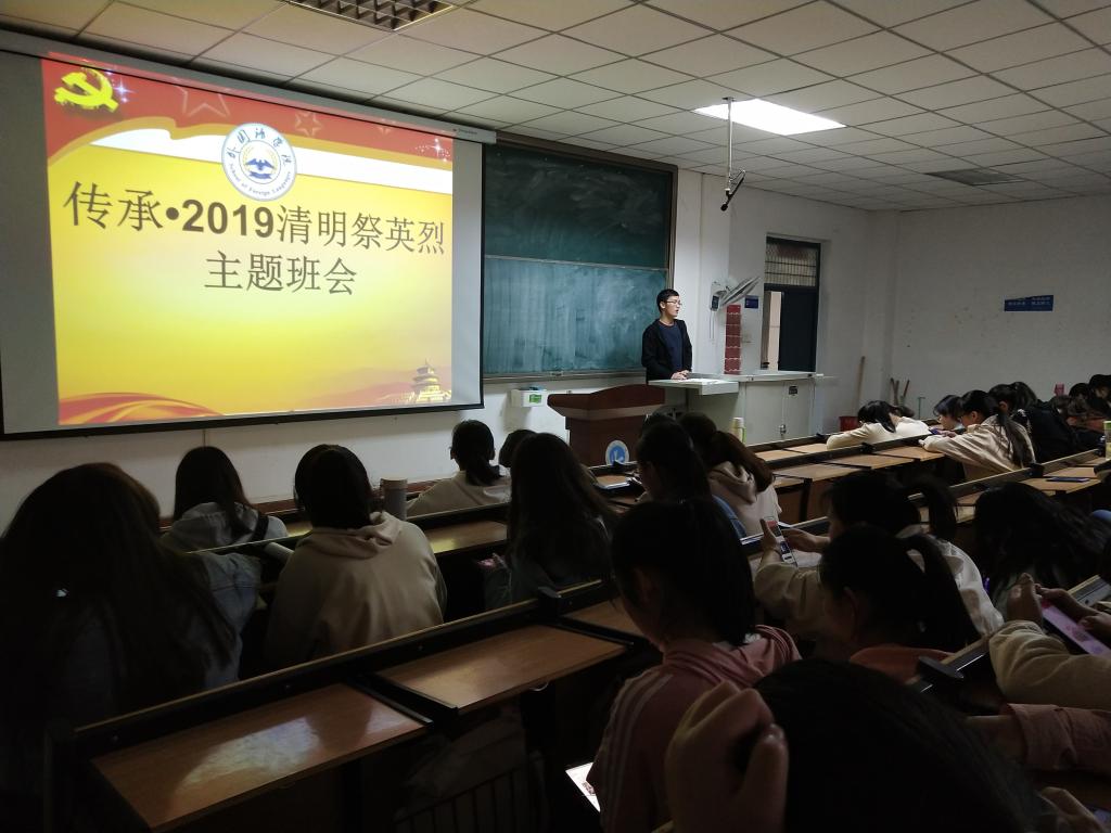 (通讯员 赵星辰)为深入贯彻落实习近平新时代中国特色社会主义思想,营造传承英烈精神、奋进新时代的良好氛围,激励新时代老员工以昂扬向上的精神状态喜迎新中国成立70周年,4月3日上午bv伟德国际1946在一号教学楼326教室召开“传承•2019 清明祭英烈”主题教育班会,院辅导员赵星辰老师主持,大二全体员工参加。