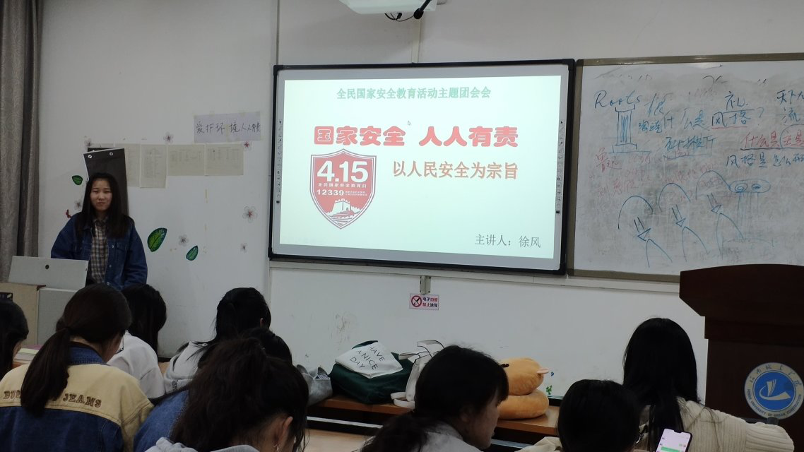 各班团支书组织担任主题团日学习活动的主讲人。在此次全民国家安全教育日主题团日活动上,团支书讲述了《宪法》《国家安全法》《反恐怖主义法》《反间谍法》等有关国家安全的法律,和同学们一起学习了习近平总书记的“总体国家安全观”,并组织观看相关反间谍国家安全教育视频。此次主题团日活动让每个员工更加了解国家安全新形势,让国家安全教育意识深入人心。