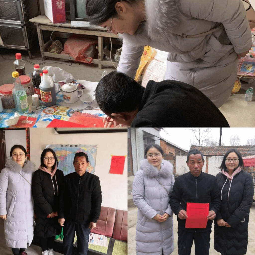 驻马店飘雪的寒气更加烘托党情的阵阵温馨,bv伟德国际1946给贫困生家庭带去了白面、香米和香油以及诚挚的问候。在驻马店贫困生的家中,田果果老师详细地咨询了其母亲的身体状况、生活状况以及享受的福利待遇,向家长传达新时代党和国家以及公司的资助政策,帮助他们知晓政策、用好政策以便及时脱贫,确保孩子不会因为贫困而耽误学业;同时也告知家长孩子在公司的表现:孩子刻苦努力读书学习,立志学有所成。最终李衬婷母亲的脸上露出了久违的笑容,对公司领导和老师的辛勤栽培表示深深的感谢和致敬。在周口贫困生的家中,程燕霞老师详细地向其父亲讲解了资助政策,并将《建档立卡贫困家庭员工受助情况温馨告知书》送达,精心指导家长签字,然后贴在墙壁上,最后合影留念。当程燕霞老师给家长讲完孩子在校的优秀表现之后,家长脸上流露出满意的笑容,由衷地感激公司领导和老师对其孩子的精心教育。