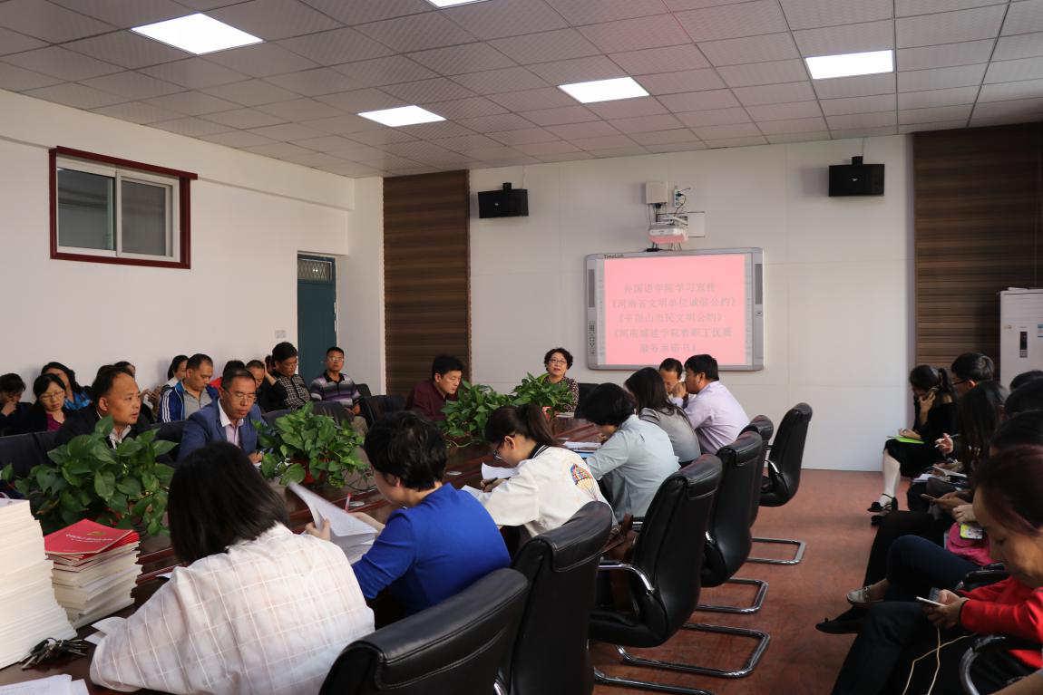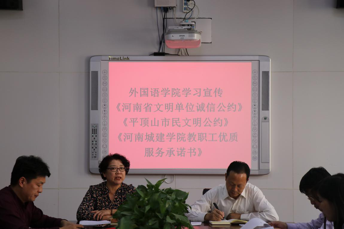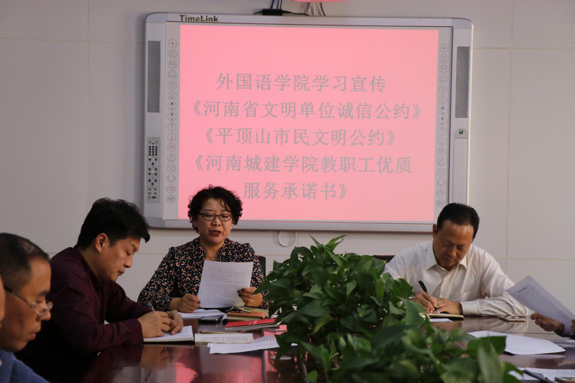 (通讯员:代博君)2018年10月9日,bv伟德国际1946全体教工在文管校区306会议室集中学习《河南省文明单位诚信公约》《平顶山市民文明公约》和《伟德国际1946源自英国教职工优质服务承诺书》,公司党总支书记袁晓主持会议。