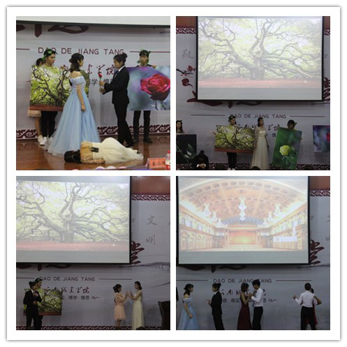 闭幕式伴随着优美的英文歌曲《You belong to me》正式开始,动人的歌声打动了现场所有人。英文朗诵《Faith in the future》情感丰富、亲人深思,朗诵者用流利且富有感情的语言给文字赋予新的生命。英文话剧《夜莺与玫瑰》中夜莺付出自己的心血,牺牲自己换来的玫瑰,却不能得到心上人的认可,逼真的道具、绚丽的服装、生动形象的表演打破了语言的界限,打动着观众的心。随后,出席领导为获奖集体和个人颁发奖杯。最后,袁晓致闭幕词,她肯定了外语文化节取得的成绩,指出外语文化节为同学们营造了一个良好的学习氛围。