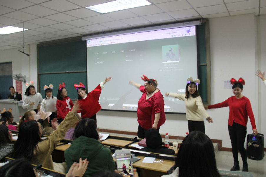 晚会伊始,主持人宣布晚会开始并欢迎17级新生的到来。伴随着欢快、动感的音乐,一场俏皮的开场街舞掀开了晚会的神秘面纱。随后,英文话剧《Cinderella》更是博得声声喝彩,更有外教Barbara与同学们同台合唱名曲《Jingle Bells》,引发了场下观众们一片尖叫声和欢呼声,会场的气氛持续升温。林颖的钢琴演奏曲《梦中的婚礼》、站秋梦的诗歌朗诵《Youth》又将同学们带入了一个静谧、祥和的氛围。在接下来的游戏环节“lucky Drag”中,为员工送上惊喜。最后,晚会在抽奖活动后落下帷幕。